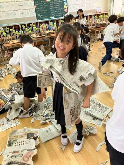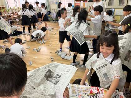 新聞に関わる皆さま、すいません。授業の道具として使わせていただきました。ちなみに、高学年では新聞記事を使った授業もしていますので、よろしくお願いします。