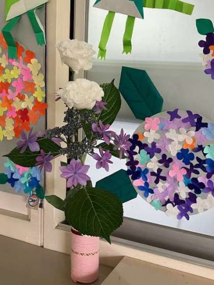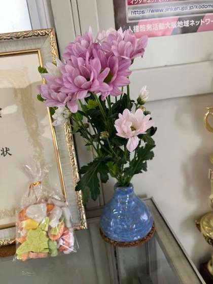 昨日、今月のお花を生けてくださいました。毎月、ボランティアの方が無償でしてくださっています。
