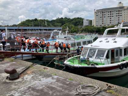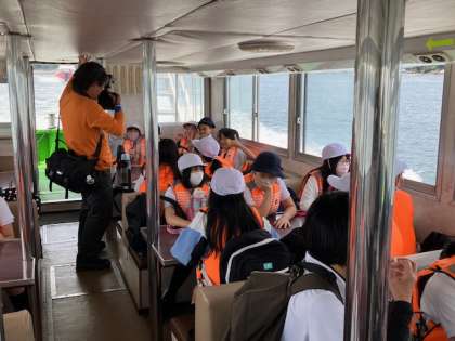 菅島へのチャーター船に乗りました。波もなく静かな海です。