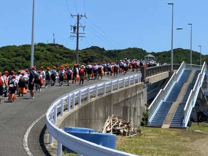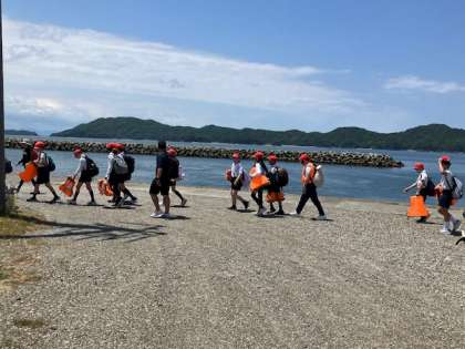マリンターミナルから磯観察の海岸に移動します。これから山越え、けっこうハードですよ!