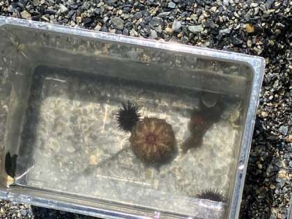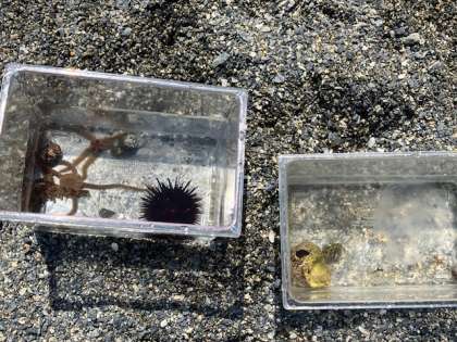 フグ、各種ヒトデ、サザエ、各種ウニ、ワカメなど。遊民クラブのインストラクターさんが説明してくれます。