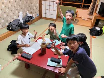 お風呂&お土産タイムの後は、就寝時間までフリータイムです。各部屋の中で、それぞれが日記を書いたら、自由に遊びます。