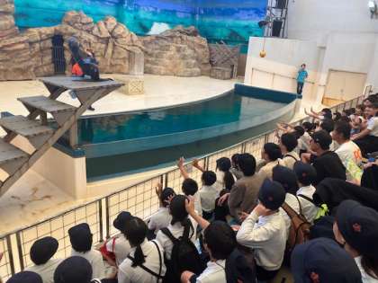 なので、全員揃って見学します。鳥羽水の名物ショーですからね!