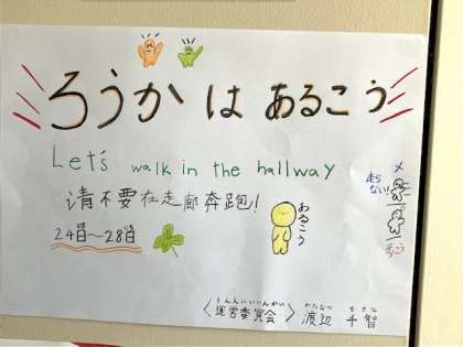 今月の最終週は、児童会の活動週間です。その目標の一つ「廊下は歩こう」の啓発ポスターが貼られました。