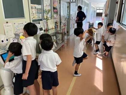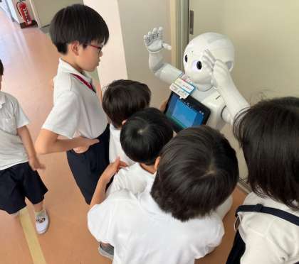相変わらず、休み時間ごとに子どもたちが集まる人気者のペッパーさん。