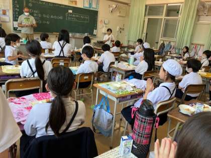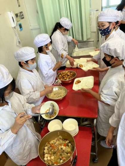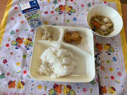今日の給食献立は、ごはん・八宝菜・厚揚げのピリ辛醤油かけ・もやしの中華和え・牛乳です。