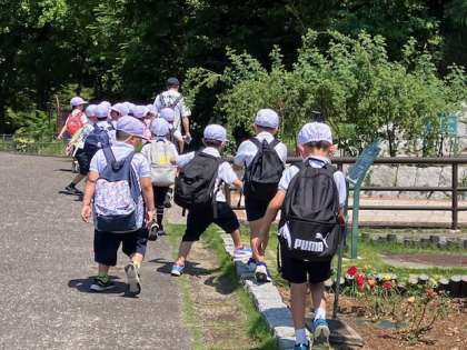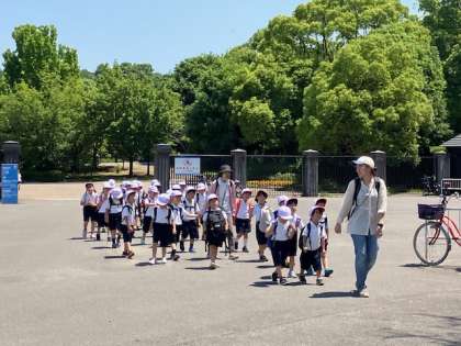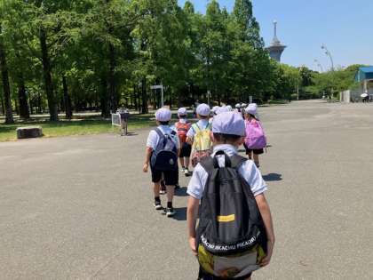 広大な緑地公園内を歩いてきました。歩きながら歌を歌ったり、こけたりしながら、暑いけど、楽しい遠足を味わっています。
