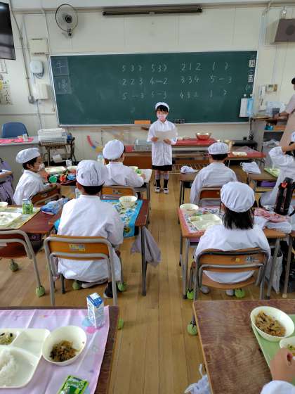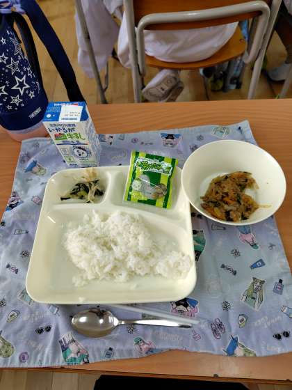 今日の献立は、マーボーはるさめ、チンゲンサイともやしの甘酢あえ、まっ茶大豆、ごはん、牛乳です。
