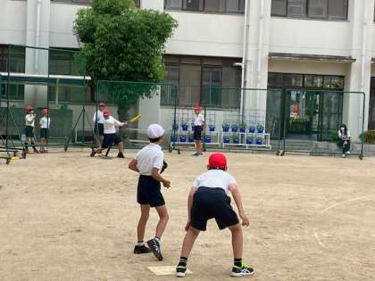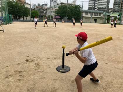 運動クラブは、T野球です。Tバッティングで打っての野球です。これもテニスボールを使用しているので、結構飛びます!中々の迫力です!