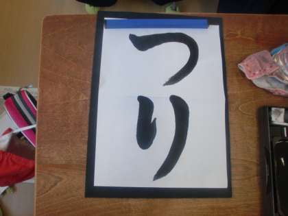 「つり」という字を書きました。「曲がり」部分の筆の向きに気をつけて書きました。