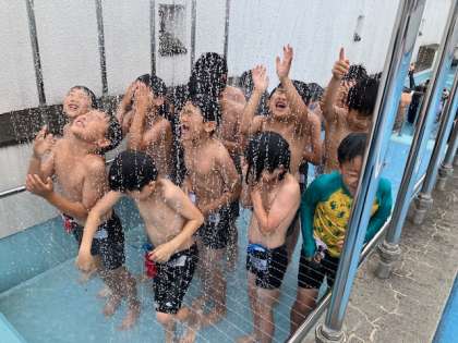 ワーワーキャーキャー、嬉しくて仕方ありません。授業が始まると、真剣に泳ぐ練習に切り替わります。