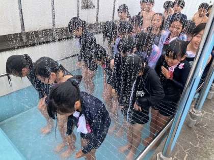 雨で中止していたプール授業の再開です。3年生の授業。