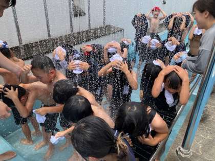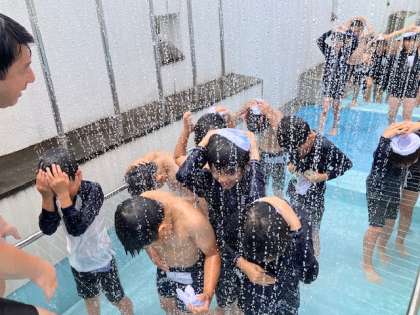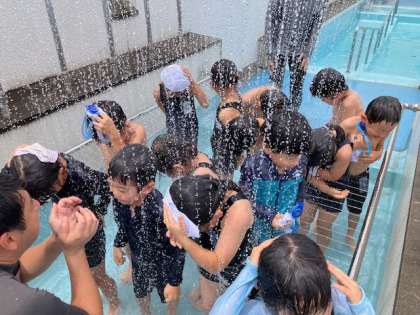 ようやくプールに、辿り着きましたが、シャワーから大騒ぎです。