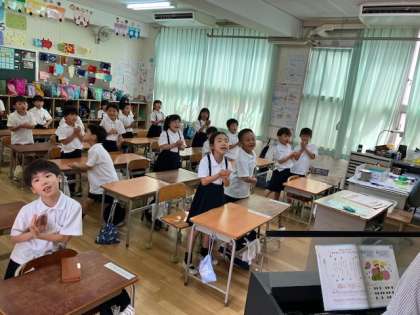 子どもたちも、先生のきれいな歌声に合わせていると、笑顔で、楽しい気持ちで、幸せを祈って歌えるようになってきました!