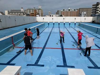 着衣泳をしたので、プールの水を抜いて清掃をしました。元々きれいなプールですが、さらにピッカピカになりました!