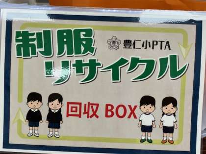 PTAの活動で、昨日から明日まで「制服リユース活動」を行っています。不要になったお子さまの制服をお待ちいただいて、必要な方にお譲りする活動です。