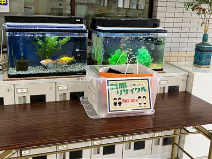 今回は不要の制服をお持ちいただく機会です。玄関にリユース箱を置いていますので、お子さまに持たせていただいても構いませんし、保護者の方がお持ちいただいても構いません。