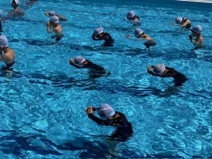 水に慣れることから。顔を水につけます。ほぼほぼ、みんな上手にできました、