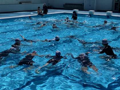 が、しっかりとクロールの形、息継ぎの練習もします。