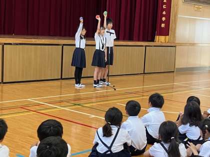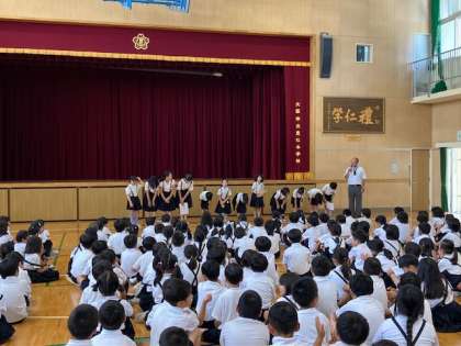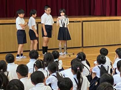校長先生からは、次のようなお話でした。暑い中、外に遊びに行く、行かないなど、一日の中で、いろんな場面で自分はどうするかを決めることがいっぱいあります。自分の体調や、いいこと悪いことの判断力で、常にしっかりと自分で正しいと思う判断ができる人になってください。あいさつ、勉強、遊び、掃除等など。正しい判断ができる人こと、カッコいい!と話されました。