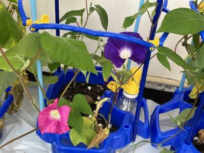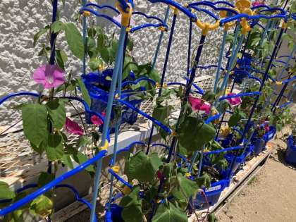 1年生が大切に育ててきた「あさがお」。きれいな花を咲かせました〜!色とりどりで、暑さの中、爽やかな風を運んでくれています。