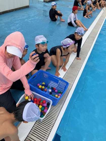 この夏の最後のプール授業なので、宝さがしや自由時間も長めにしてくれました。