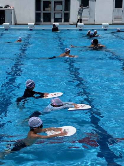 ビート板を使ってのバタ足練習もしました。少しずつですができるようになりそうです。