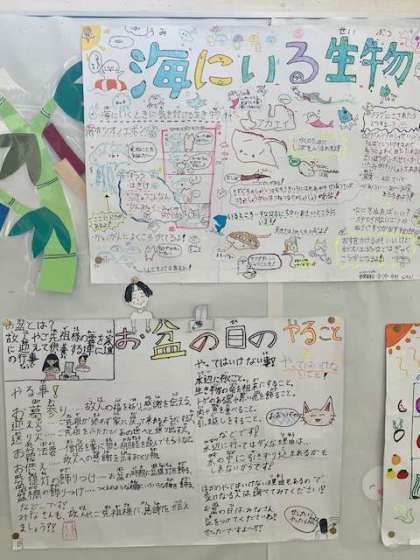 海にいる生物、お盆の日のやること、夏のおすすめ野菜、アイスを作ろう。