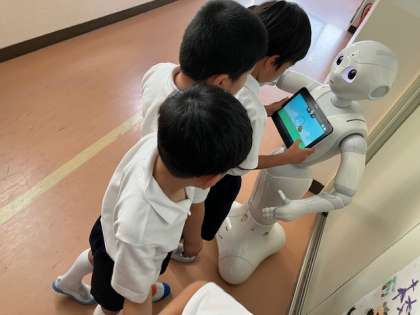 1学期最後の日も、ペッパーさんはみんなに喜んでもらおうと、ゲームをし続けてくれています!