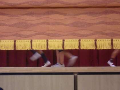 舞台の上を歩く人の人数を当てます。足しか見えないので結構難しいですよ。