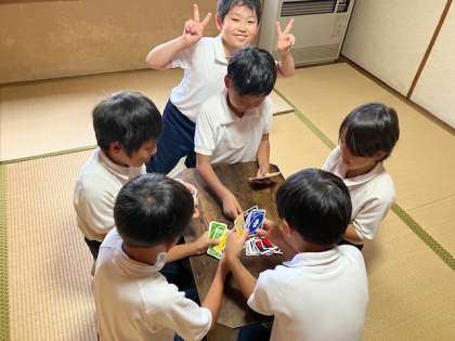ウノとトランプは持ってくるのがOKなので、部屋ではとりあえずウノをしています。中には「叩いてかぶってジャンケンポン」をしたりして、楽しそうです♪