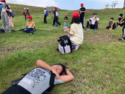 2度めの休憩。ロッジで渡された凍ったアクエリアスを飲んで、復活!!