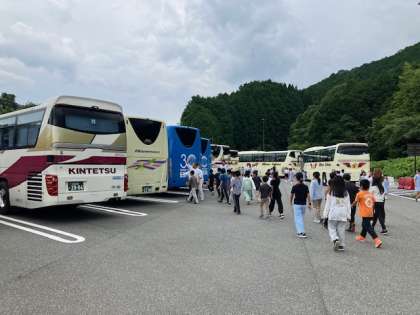 道の駅まほろばで休憩です。ほぼ予定通りなので、学校帰着は午後4時30分頃です。今後、道も空いていそうなので、少し早く到着するかもです。