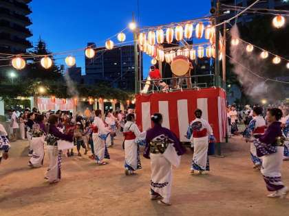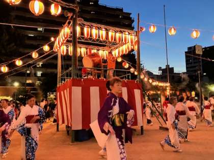踊り手プロフェッショナルの方々による盆踊りが続く中、7時30分からは子ども盆踊りタイムです。