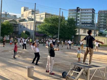 今日は、地域主催の夏休みラジオ体操の最終日です。8月16日からの平日、毎日100人ほどの親子が参加してくれました。