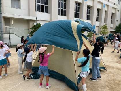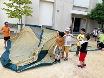 お米か炊けるのを待つ間に、今晩寝るテントを組み立てます。