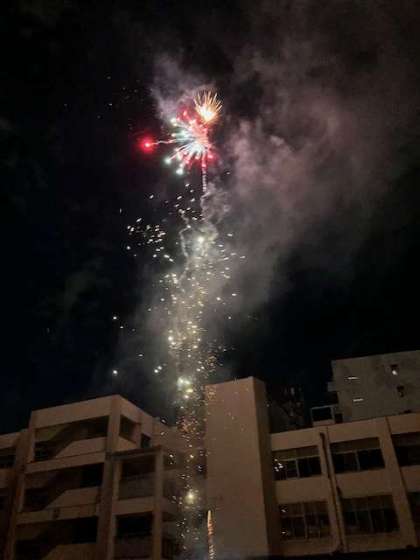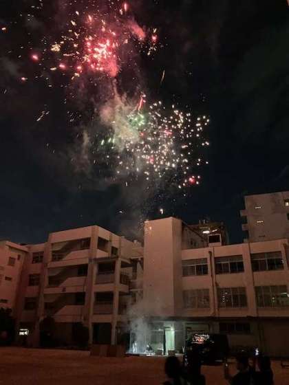 ヒュー、ヒュー、ドカーン!の花火が何発も夜空に打ち上がりました。子どもたちのお迎えの保護者の皆さんも一緒に、夏の終わりの夜空のショーを楽しみました!