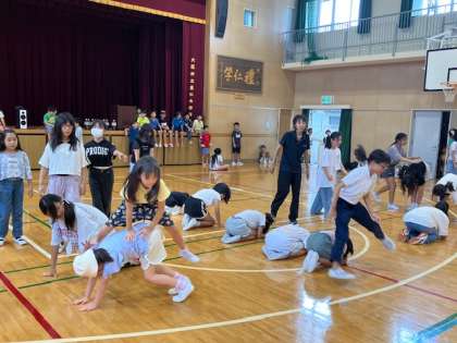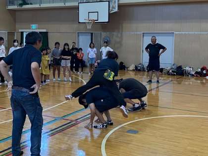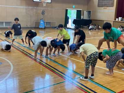 次は馬跳びリレーです。まず、大人が見本を見せてから。昔ながらのリレー、子どもたちはあまり馴染みがないようでしたが、慣れたらポンポン跳んでました。