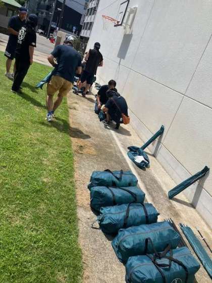 終わった後、地域の皆さんが、運動場の花火のカス拾いや、様々な道具類の片づけ、そして組み立てたけど使わなかったテントを乾くのを待って、かたづてくれました。