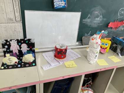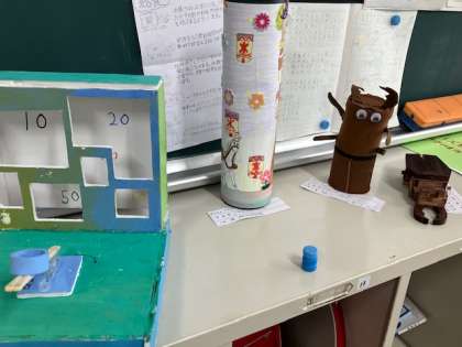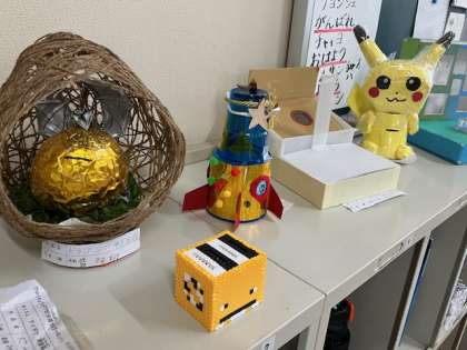 5年生の教室に楽しい貯金箱がたくさんありました。