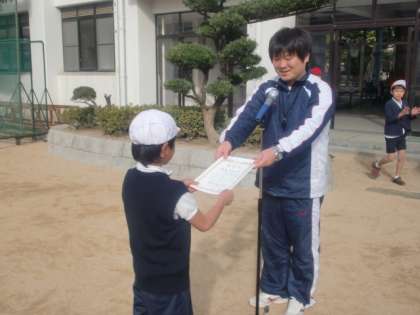 今日は2年生の大会でした。優勝者は2組のY.T.さんでした。入江先生から表彰状をいただきました。