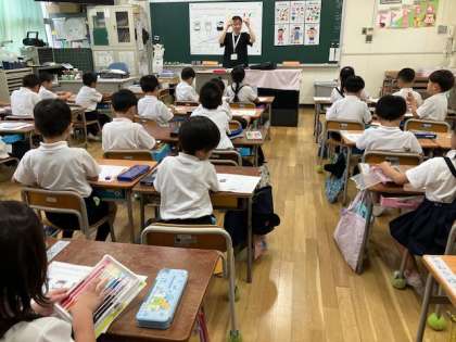 栄養教諭の方に来ていただいて、1年生で栄養の授業をしていただきました。