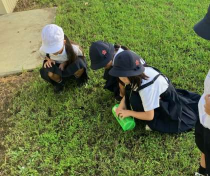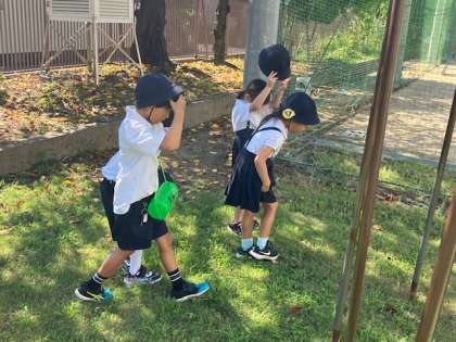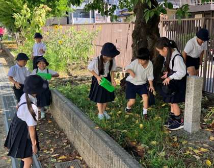 1年生。生活の時間で、校庭にいる虫を探しています。