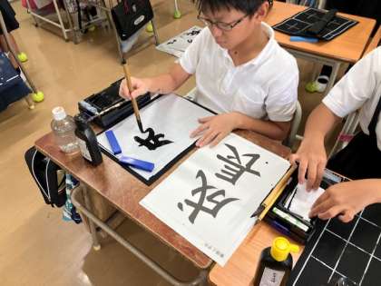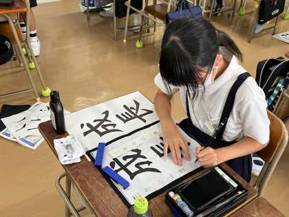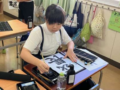 5年生の書写。「成長」を書きました。大人の願いを込めた題材ですね。