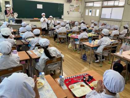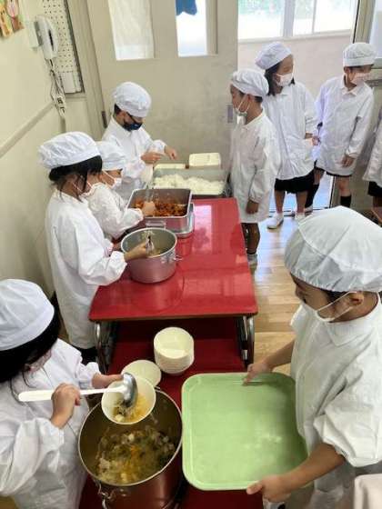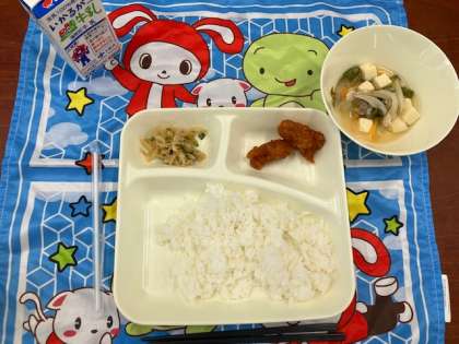 今日の給食献立は、ごはん・ヤンニョムチキン・切干大根のナムル・豆腐のスープ・牛乳です。
