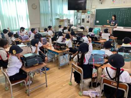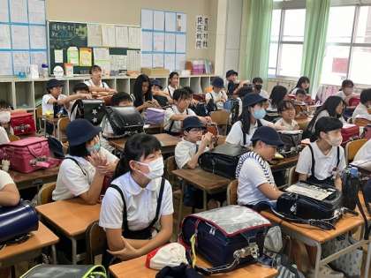 クラスで担任の先生から避難時の注意事項を聞いて、講堂に避難します。その後、登校班ごとに集団下校します。