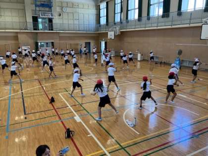 4年生の運動会の演技は、エイサーです。エイサーの音楽、踊りを研究して、運動会用にアレンジしました。
