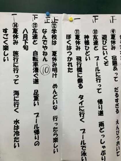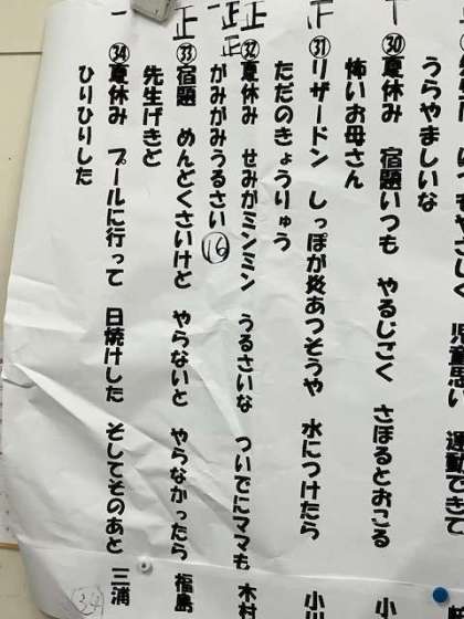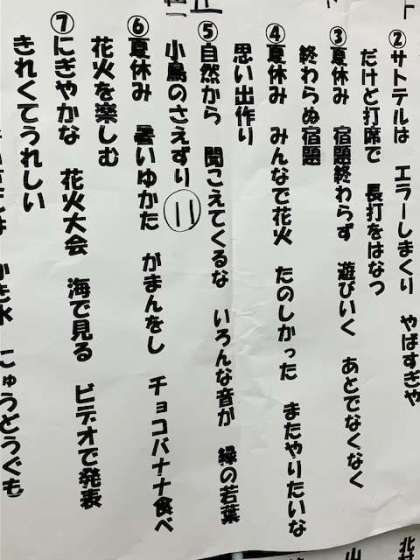 投票結果は、1位「夏休み せみがミンミン うるさいな ついでにママも ガミガミうるさい」 2位「自然から 聞こえてくるな いろんな音が 緑の若葉 小鳥のさえずり」 3位「学校は 夏休み明け めんどいな 行ったら楽しい なんでやねん」