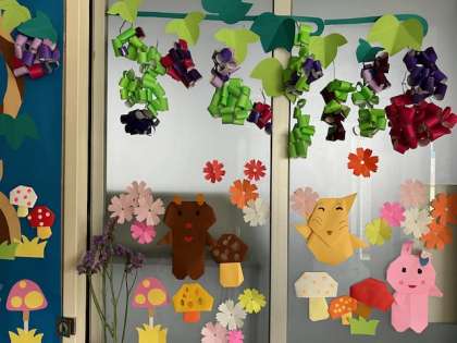 いきいき教室前や廊下の掲示物が秋バージョンになりました〜。