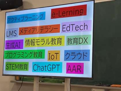 日頃、子どもたちと一人一台パソコンを活用しながら色んな学習をしていますが、今後、より一層ICT教育を進めるために、ちょっと難しい研修会を行いました。